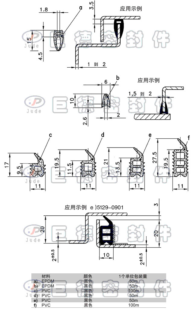 材料: EPDM(三元乙丙橡胶)黑色